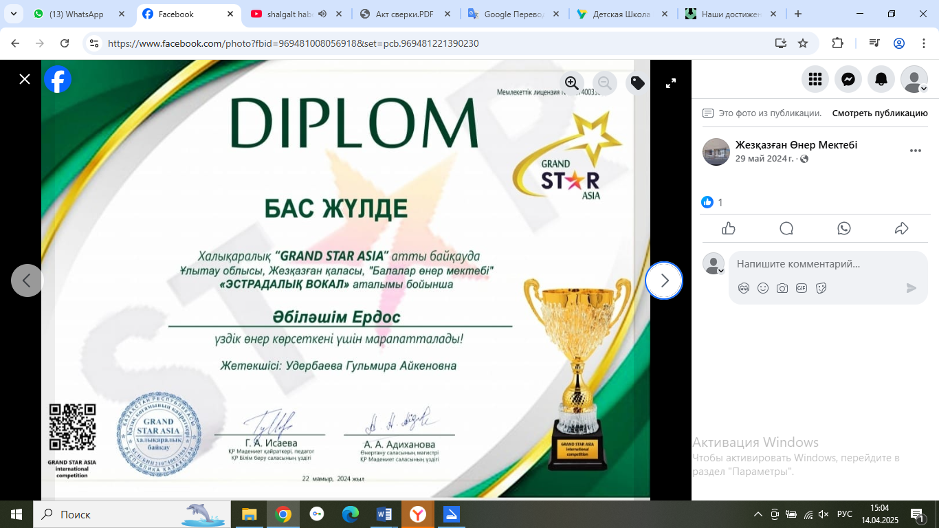 Оқушылардың «GRAND STAR AZIA» халықаралық өнер байқауына қатысуы.