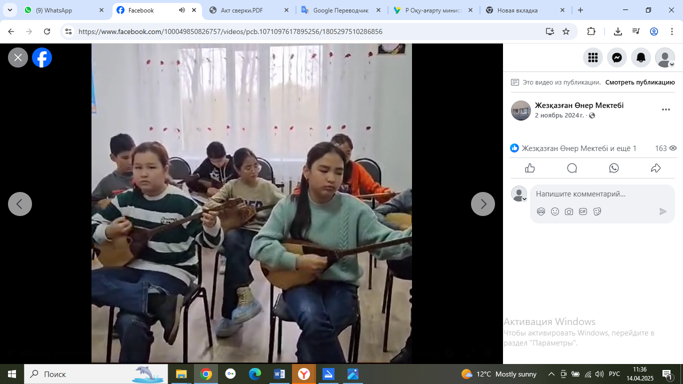 2.11.2024 Оқушыларды жас музыканттардың республикалық конкурсына даярлау