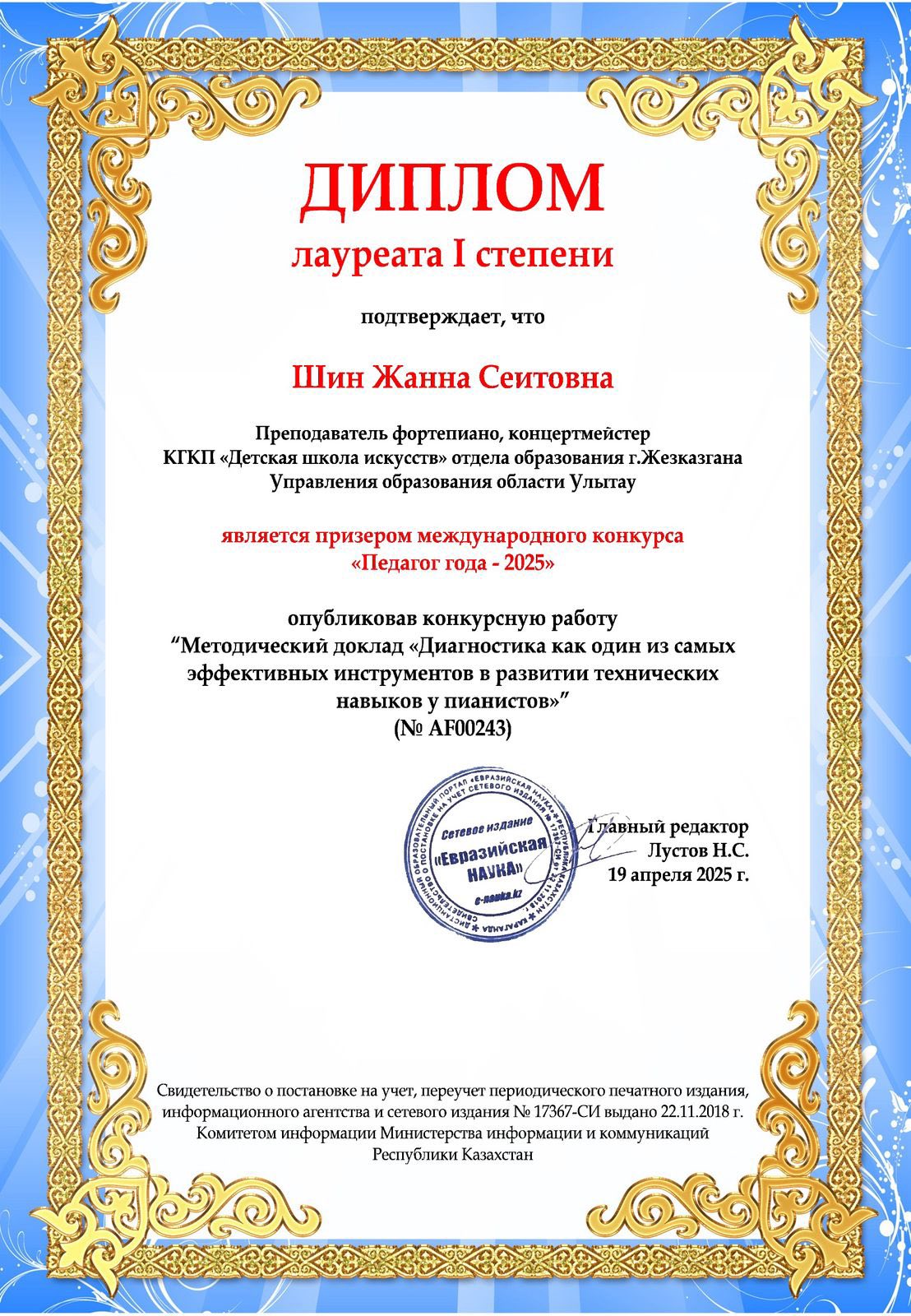 21.04.2025 Педагоги Детской школы искусств г.Жезказган стали победителями на международном конкурсе педагогических идей «Педагог года -2025».