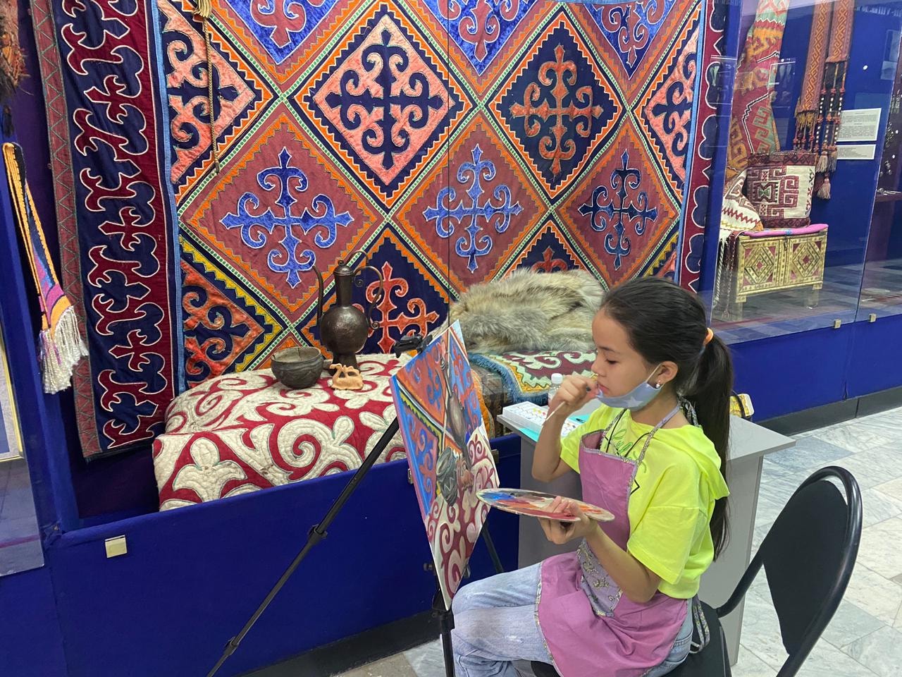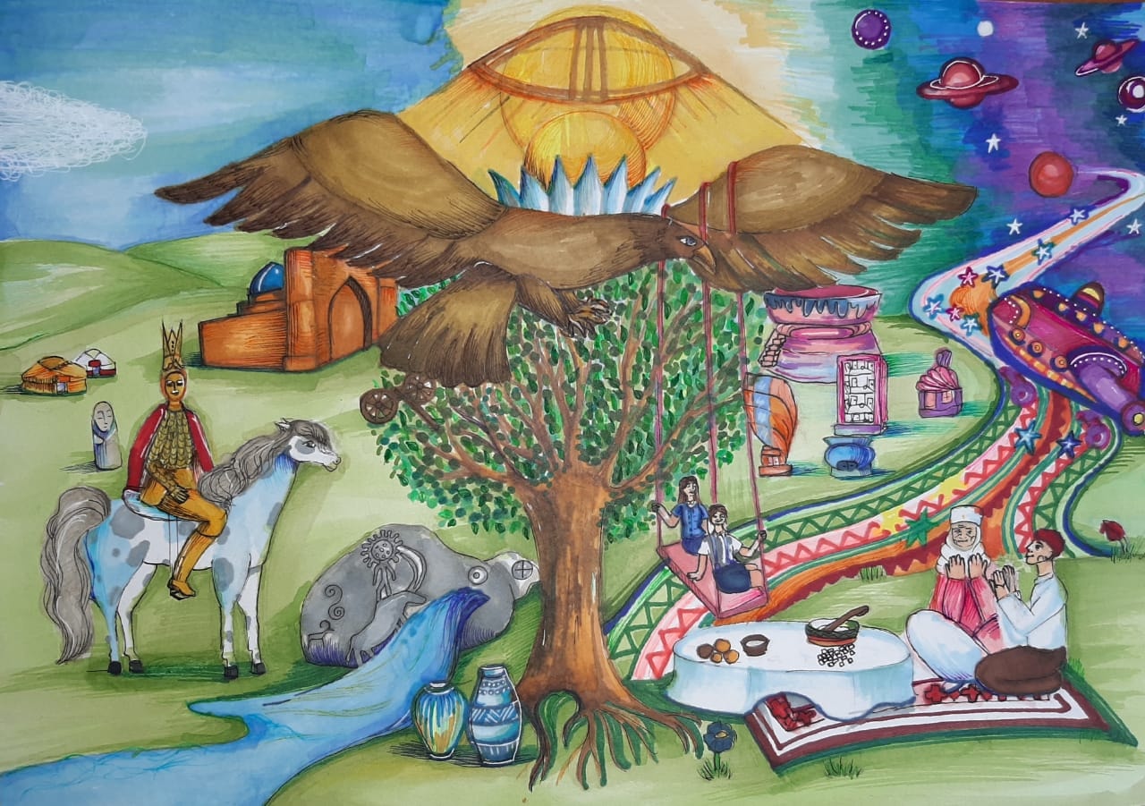 В рамках подготовки к Республиканскому конкурсу организованному МОН РК посвящённому 30-летию Независимости Республики Казахстан "Бояулар құпиясы" проведена работа совместно с историко-археологическим музеем в отделении "Изобразительное искусство". Ученица 1-го класса Куаныш Аяла отразила в своей картине с натуры предметы древнего и бронзового периода- "Натюрморт с кумганом".